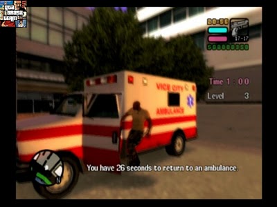 Após salvar, use o truque do Save/Load (vá em Load Game e carregue o jogo de novo), e volte para a missão de Paramédico novamente. Ela só possui 2 Checkpoins, então, quando receber a mensagem de novo, seja mais cauteloso.